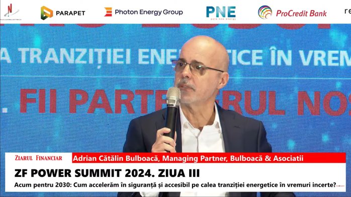 România trebuie să atragă investitori strategici şi investitori financiari care văd România şi regiunea ca fiind o piaţă strategică, pentru investiţii în tranziţia energetică, a explicat Adrian Cătălin Bulboacă, managing partner al casei de avocatură Bulboacă & Asociaţii, prezent la ZF Power Summit 2024.