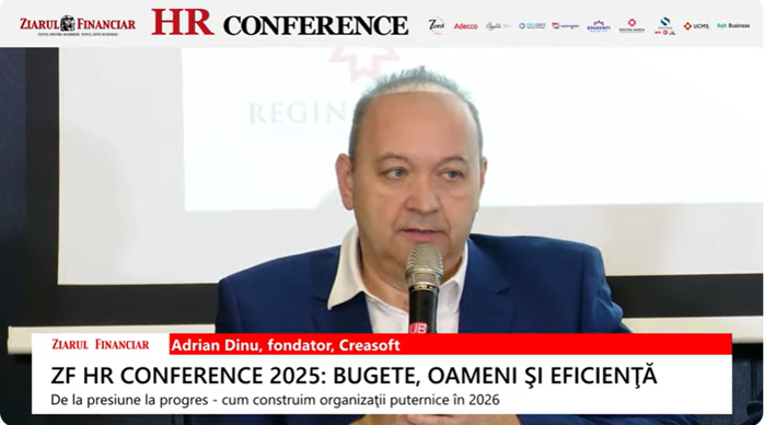 Scopul digitalizării este ca oamenii din departamentul de HR să piardă cât mai putin timp cu gestionarea documentelor şi luarea unor decizii, având în vedere că AI ajută să faci un calcul de buget, să calculezi sporuri, să faci simulări pe diferite taxe, a declarat Adrian Dinu, fondator, Creasoft în cadrul conferinţei ZF HR Conference 2025.
