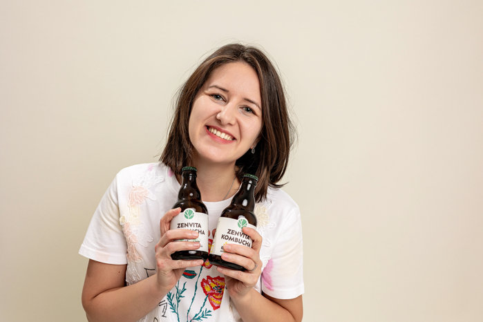Afaceri de la zero. Iulia Suciu, cu background în consultanţă fiscală, a creat Zenvita Kombucha, brand sub care produce kombucha cu fructe într-un laborator din Crângaşi