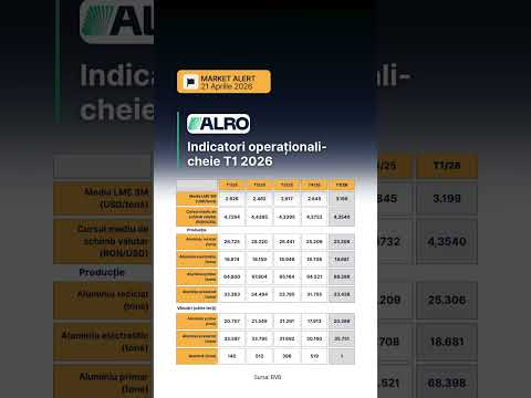 ALRO - Rezultate Operaționale T1 2026 Grupul ALRO a publicat trading update-ul pentru primul t