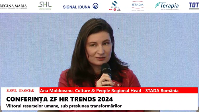 Grupul Stada în România, care pune pe piaţă produse farmaceutice şi construieşte o fabrică de medicamente în Turda, utilizează noile tehnologii şi AI-ul şi continuă digitalizarea, a spus Ana Moldovanu, Culture & People Regional Head - STADA România, în cadrul conferinţei ZF HR TRENDS 2024: Viitorul resurselor umane, sub presiunea transformărilor.