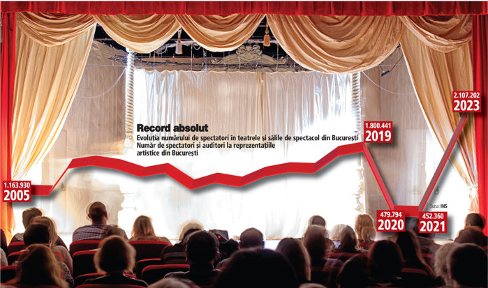 ♦ „Dacă vrei să mergi la teatru în Bucureşti, trebuie să te faci actor“, consideră Manuela ♦ „La TNB cred că trebuie să-ţi iei bilet cu trei luni înainte ca să-ţi găseşti loc la un spectacol bun“, spune Alecsandra ♦ „De doi ani vreau să merg la Fantoma de la Operă şi verific periodic când se pun biletele în vânzare şi nu găsesc“, afirmă Ruxandra ♦ „Mi-am luat bilete în ultima zi la colecţia Dali, cu peste 100 de lei, la ofertă, şi era full“, spune Cristina ♦ „Am stat aproape două ore la coadă să văd «Sărutul» lui Brâncuşi“, susţine Ioana ♦ Acestea sunt doar câteva exemple care arată cum cultura, cel puţin în Bucureşti, a devenit un domeniu care a câştigat mult de pe urma pandemiei şi a perioadei de izolare socială. „Pandemia ne-a influenţat, categoric, consumul cultural. Şi nu cred că doar domeniul teatral, ci şi în celelalte sectoare“, spun reprezentanţii Teatrului Evreiesc de Stat din Bucureşti.