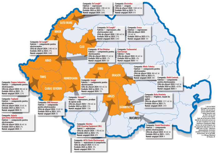 ♦ În topul „furnizorilor“ de echipamente de acest fel stau China, Germania şi Polonia, în timp ce România e pe locul opt ♦ Totuşi, Germania şi Polonia sunt şi pe podiumul importatorilor, aşadar se mai echilibrează balanţa comercială în segment ♦ Pe de altă parte, România are excedent comercial în domeniu, adică exporturile de electrocasnice depăşesc importurile ♦ Pe plan local, ZF a identificat aproape 20 de fabrici importante de produse finite şi componente pentru electrocasnice. E posibil să mai fie şi altele, dar să funcţioneze sub un alt CAEN.