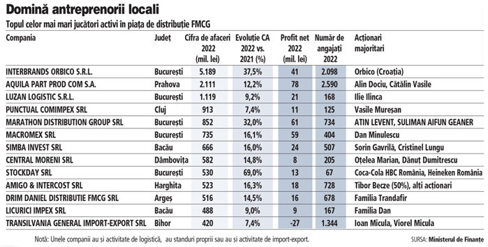 ANALIZĂ ZF. A început „vânătoarea“ în distribuţia de bunuri de larg consum: jucătorii îşi consolidează poziţia în piaţă fie prin achiziţii, fie prin lansarea de branduri proprii. Topul este dominat de companii antreprenoriale româneşti, însă încep să fie „vânate“ de străini