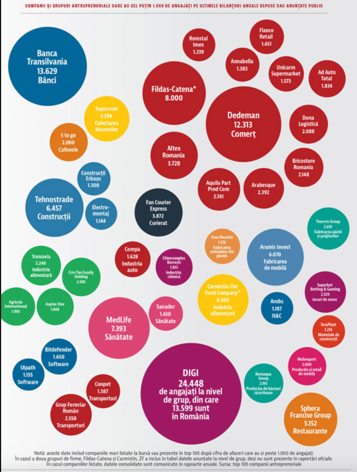 Anuarul ZF Top 100 companii antreprenoriale. Antreprenorii români concurează cu corporaţiile pentru titlul de mari angajatori: mai mult 40 de companii locale au trecut de 1.000 de angajaţi