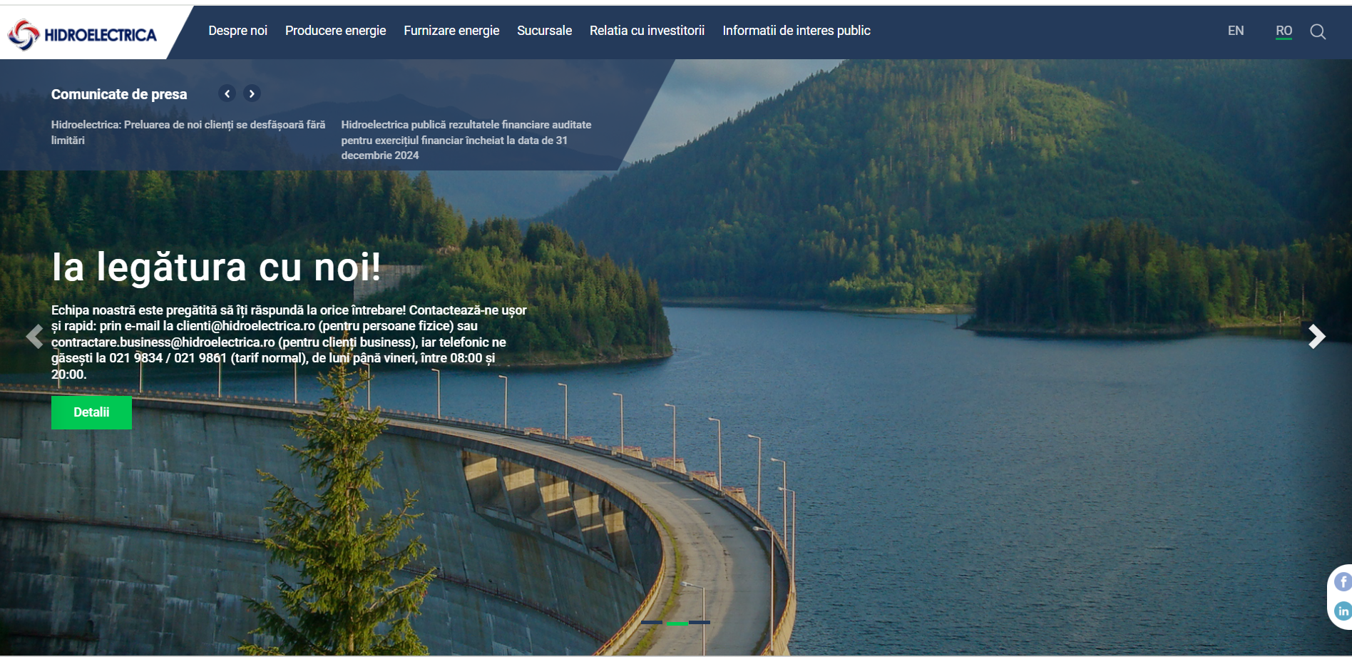 Informatie preluata din publicatia "Profit.ro" categoria Energie - citeste integral articolul "ANUNȚ Hidroelectrica către clienți: finalizarea modernizării sistemelor informatice înainte de termen" - click aici