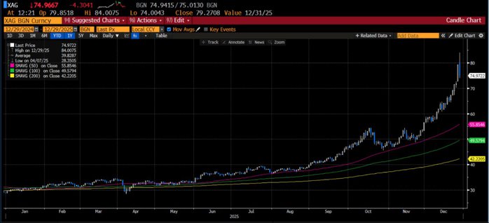 Ultima săptămână de tranzacţionare din 2025 începe într-o notă precaută pe bursele la nivel mondial, fără semnele clasice ale unui „Santa rally”. Contractele futures pe Wall Street sunt pe minus, cu presiuni vizibile pe acţiunile marilor companii de tehnologie, însă cele europene sunt mixte. În acest context de „risk-off”, argintul, unul dintre cei mai mari câştigători ai anului, este lovit de un val de vânzări, după ce a atins un nou maxim istoric.