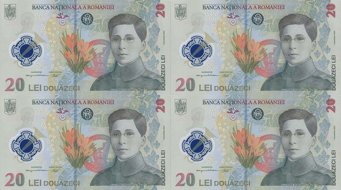 Banca Naţională lansează pe 1 decembrie în circuitul numismatic o coală specială formată din patru bancnote cu valoare nominală de 20 lei, la un preţ de vânzare de 120 lei, exclusiv TVA, inclusiv certificatul de autenticitate