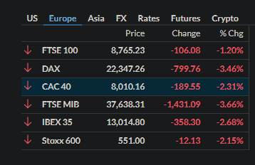 BREAKING Scăderi abrupte pe burse din cauza tarifelor lui Trump: DAX pierde 3,5%, Paris 2,3%, Milano 3,7%, Bucureşti 1,5%, S&P 1,8%. La BVB, tranzacţii speciale cu acţiuni Evergent de 64 mil. lei. Toate cele 20 de acţiuni din BET, pe minus