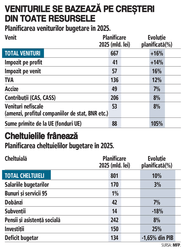 Buget 2025. Guvernul se bazează pe creşteri de venituri din impozit pe profit, TVA şi impozit pe venit
