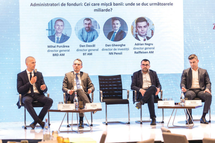 Bursă. De ce creşte bursa când economia încetineşte? Răspund Dan Gheorghe (NN Pensii, cu active de 70 mld. lei pe mână), Mihai Purcărea (BRD AM, 10 mld. lei), Dan Dascăl (BT AM, 9 mld. lei), Adrian Negru (Raiffeisen AM, 8 mld. lei) la ZF Capital Market Summit