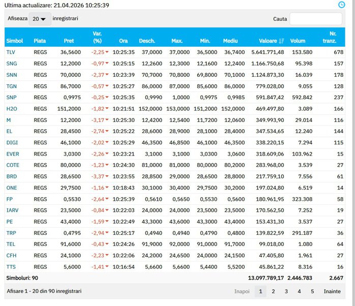 Bursa de Valori Bucureşti a deschis marţi dimineaţă pe teritoriu negativ, principalii indici coborând cu aproape 2%, pe fondul crizei politice declanşate după votul intern al PSD de luni seară, care a retras sprijinul pentru guvernul condus de premierul Ilie Bolojan. Investitorii urmăresc acum evoluţia negocierilor şi posibilitatea unei moţiuni de cenzură.
