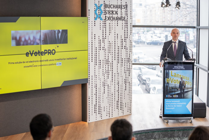 eVOTE a lansat miercuri la Bursa de Valori Bucureşti eVotePRO – extensia platformei special destinată investitorilor instituţionali pentru a vota în Adunările Generale ale Acţionarilor din cadrul companiilor listate la BVB.