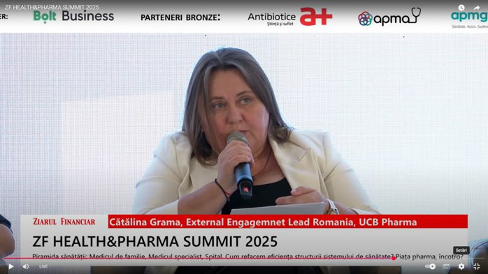 Cătălina Grama, External Engagemnet Lead Romania în cadrul UCB Pharma, o companie biopharmaceutică belgiană, consideră că în România ar trebui să vorbim mai mult despre pacienţii care aşteaptă şi despre familiile acestora care speră că vor găsi tratament, dar, în schimb, vorbim despre piedicile pe care le avem în accesul la medicamente şi inovaţie.
