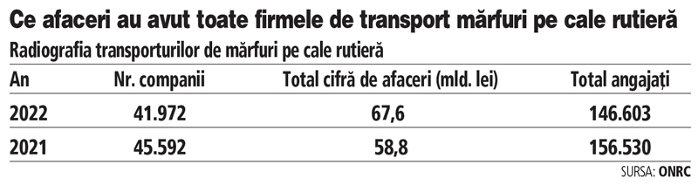 Ce afaceri au avut toate firmele de transport mărfuri pe cale rutieră