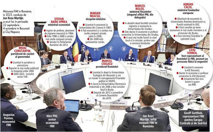 ♦ Ei au stat faţă în faţă cu patru economişti pur-sânge ai Fondului Monetar Internaţional şi au discutat despre capacitatea României de se finanţa şi de a rambursa datoria actuală, despre poziţia economică externă a României, nivelul datoriei publice pe termen scurt, rezerva valutară sau reducerea deficitului bugetar.