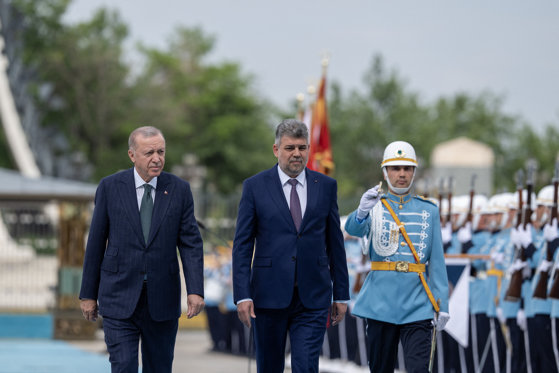 Premierul Marcel Ciolacu a fost primit marţi la în Curtea Palatului Prezidenţial din Ankara, de preşedintele Republicii Turcia, Recep Tayyip Erdoğan. Împreună ne-am stabilit o ţintă ambiţioasă de 15 miliarde de dolari pe an schimburi comerciale pe care să o bifăm în următorii ani, spune Marcel Ciolacu, în timpul declaraţiei comune de presă cu preşedintele Turciei, Recep Tayyip Erdogan.