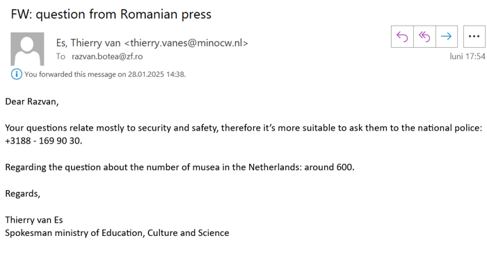 Ce răspunde Ministerul Culturii din Olanda la întrebarea: câte jafuri din muzeele olandeze au loc anual? ”Întrebaţi la Poliţie, nu la noi”