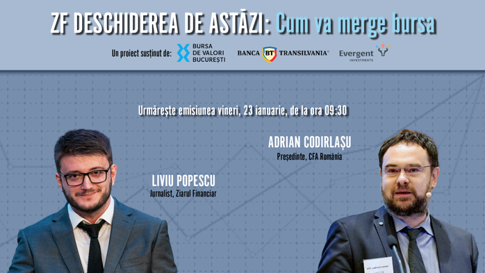 Ce riscuri şi ce oportunităţi vede Adrian Codirlaşu, lector universitar ASE şi preşedinte CFA România, pentru România şi pentru Bursa de Valori Bucureşti? Ce semnale transmit ameninţările lui Trump? Dar scăderea deficitului? Răspunsurile, în ZF Deschiderea de Astăzi 23 ianuarie