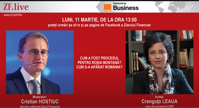 Ultima audiere din dosarul Roşia Montană a avut loc la finalul lui 2020, a spus la ZF Live, Crenguţa Leaua, avocat specializat în arbitraje internaţionale la Leaua Damcali Deaconu Păunescu (LDDP). Astfel, tribunalul de arbtitraj de la Washington a avut nevoie de trei ani pentru a decide dacă va avea câştig de cauză Gabriel Resources, compania care ar fi trebuit să exploateze aurul de la Roşia Montană, sau România. Decizia a fost făcută publică vineri, 8 martie.