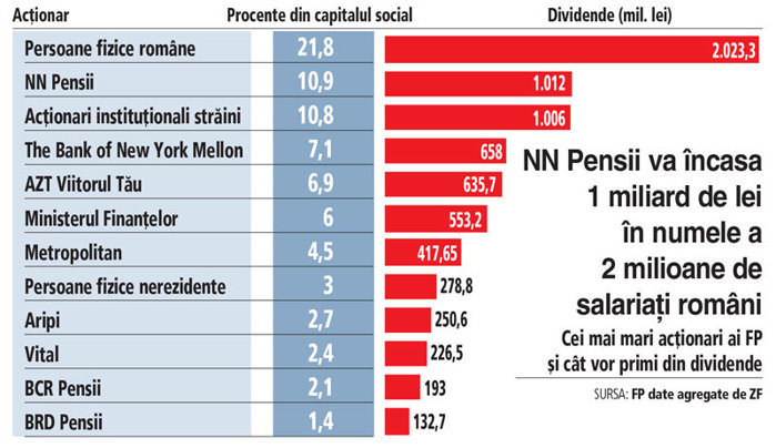 Cea mai mare distribuţie de cash din istoria României, de 2 mld. euro sub formă de dividende de la Fondul Proprietatea, poate aduce o scădere a randamentelor pe titluri de stat şi o uşoară depreciere a leului pe termen scurt. Aşteptări de creşteri ale preţurilor acţiunilor