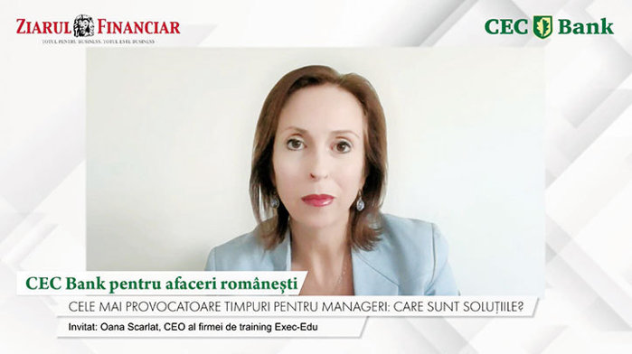 CEC Bank pentru Afaceri Româneşti. Cum păstrezi nivelul de implicare a angajaţilor fără bonusuri pentru că deja ai intrat la optimizări de costuri? Oana Scarlat, CEO, Exec-Edu: Sunt câteva elemente simple. Plus un reminder: Talentul este primul care pleacă din companie