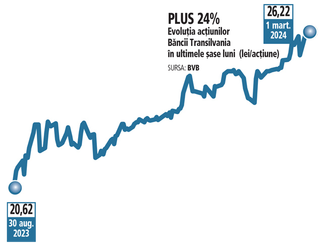 Cehii de la Wood oferă o recomandare de cumpărare pentru acţiunile Băncii Transilvania şi dau un preţ ţintă de 26,7 lei