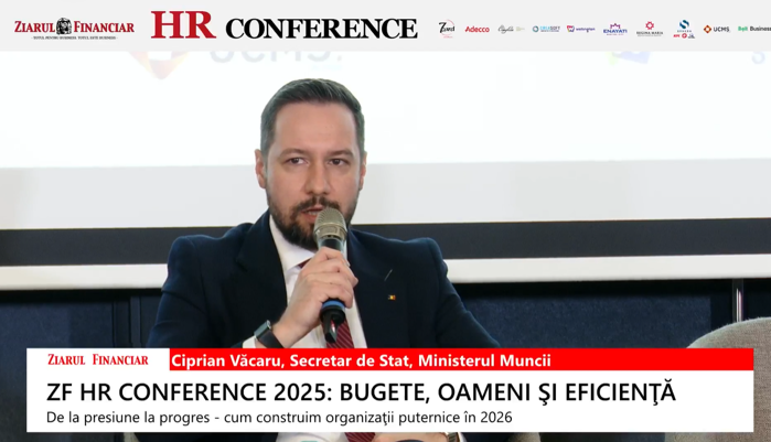 De acum într-un an de zile cred că vom fi pe un traseu de stabilitate, cu o crestere mică, a spus Ciprian Văcaru, secretar de stat, Ministerul Muncii, în cadrul conferinţei ZF HR Conference 2025: Bugete, oameni şi eficienţă. De la presiune la progres - cum construim organizaţii puternice în 2026.