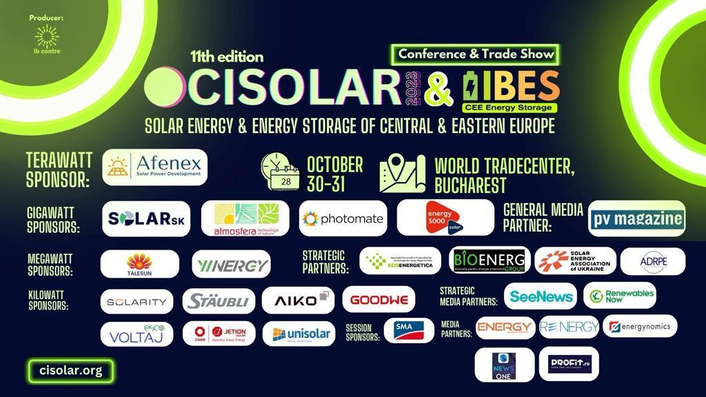 Cea de-a 11 ediție a CISOLAR, Conferința și Târgul dedicate industriei energiei solare din Europa Centrală și de Est (ECE), va avea loc la București în perioada 30-31 octombrie 2023.