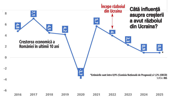 Cum va fi creşterea economică în 2026, după un 2025 care nu a fost un dezastru. Reducerea creşterii economice s-a accentuat puternic după începerea războiului din Ucraina. Peste o săptămână, INS va publica datele-semnal despre creşterea economică din 2025 – o creştere ce se învârte, după cum arată datele preliminate, în jurul procentului de 1%