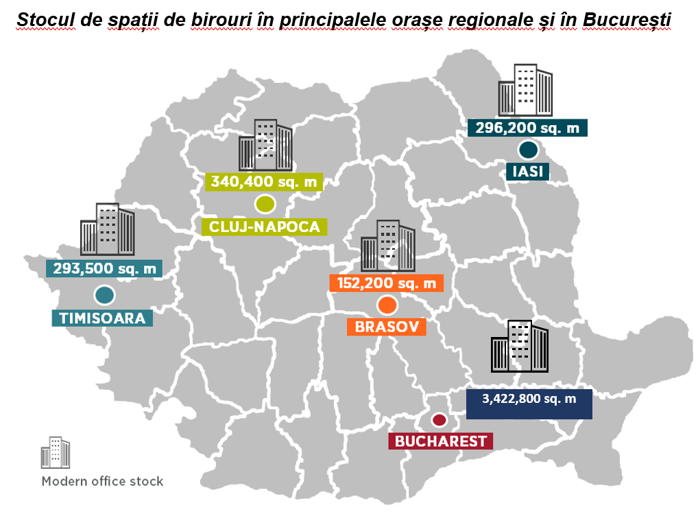 Cushman & Wakefield Echinox: Stocul de spaţii de birouri din principalele oraşe regionale a depăşit 1 milion mp, 30% din volumul din Bucureşti. Iaşi a devenit al doilea cel mai mare hub regional, după Cluj - Napoca, devansând Timişoara