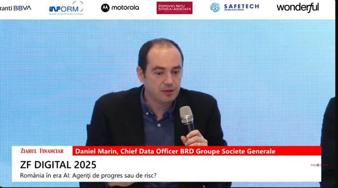 Companiile trebuie să pună la dispoziţia angajaţilor instrumente de AI care să fie aprobate şi guvernate din punct de vedere securitate corporate pentru a evita breşele de securitate apărute în urma folosirii de astfel de tool-uri pe dispozitivele personale ale angajaţilor, a explicat Daniel Marin, Chief Data Officer, BRD Groupe Societe Generale.
