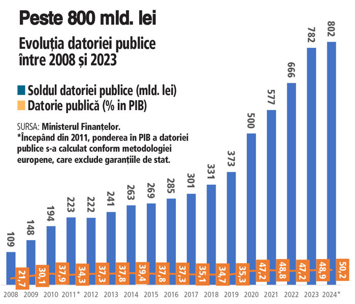 ♦ 781 mld. lei a fost datoria administraţiei centrale, în vreme ce 21 mld. lei a fost datoria publică a administraţiei locale.