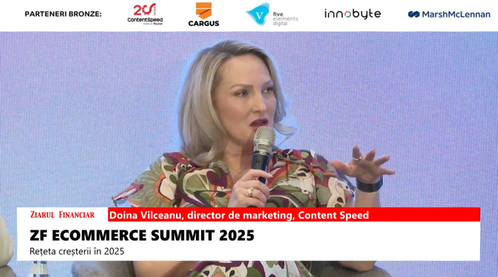 Următorul nivel e digitalizarea comerţului B2B – tot ce înseamnă distribuţie. B2C e vocal şi a ajuns la 6 mii de miliarde şi în B2B e la 20-25 mii de miliarde de dolari, acolo sunt cifrele mari şi avem nevoie de funcţionalităţi, acolo o diferenţă de 1% înseamnă foarte multe milioane, a spus Doina Vîlceanu, director de marketing, Content Speed, în cadrul conferinţei ZF eCommerce Summit 2025.