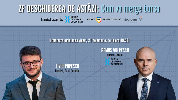 Ediţie specială a emisiunii ZF Deschiderea de Astăzi: 30 de ani de la redeschiderea Bursei de Valori. Urmăriţi vineri o înregistrare video ZF cu Remus Vulpescu, CEO BVB, de la sediul BVB din 20 noiembrie 2025, la trei decenii de la prima tranzacţie cu acţiuni