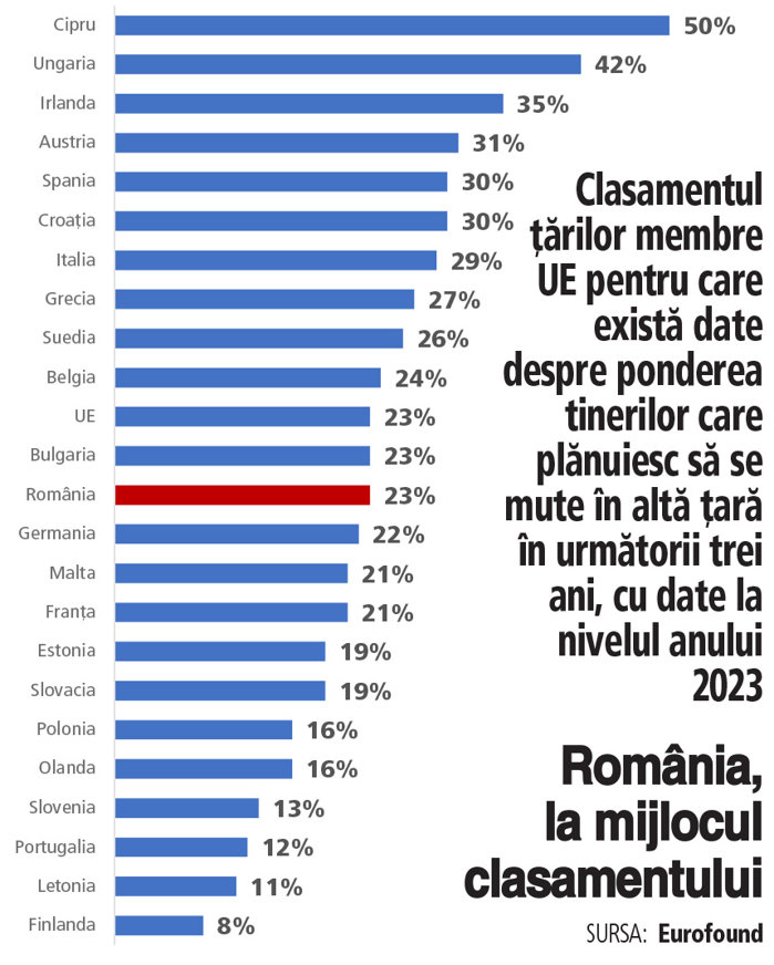 ♦ Media Uniunii Europene este de 23% ♦ Cea mai mare valoare a fost înregistrată de Cipru, cu o pondere de 50%, iar cea mai mică este în Finlanda, de 8%.