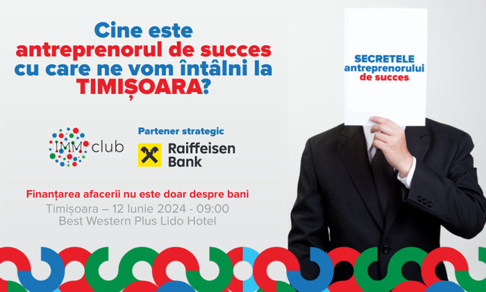 Eveniment pentru antreprenori, la Timişoara: IMM Club organizează evenimentul ”Secretele antreprenorului de succes”, în parteneriat cu Ziarul Financiar şi Contzilla şi cu susţinerea BERD