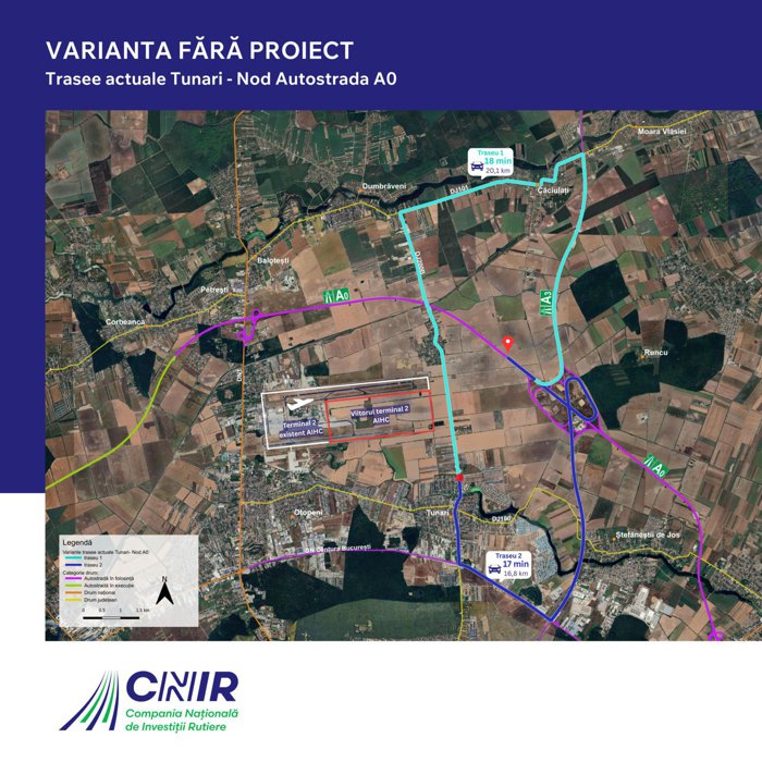 Cel mai important aeroport din România se pregăteşte pentru o transformare fără precedent. Trei proiecte majore converg spre Otopeni – Magistrala 6 de metrou, al cărei şantier avansează deja cu staţii realizate în proporţie de peste 70%, un drum expres de legătură cu Autostrada A0 a cărui licitaţie tocmai a fost trimisă la ANAP pentru validare şi un Terminal 2 de pasageri proiectat pentru 30 de milioane de călători pe an, cu o investiţie totală estimată la 1,4 mld. euro. Pe lângă aceste trei proiecte de anvergură, mai sunt în diverse stadii lărgirea DN1 la trei benzi pe sens între aeroport şi A0 şi un pasaj subteran la ieşirea din aeroport pe DN1. Toate vizează acelaşi obiectiv: transformarea Aeroportului Henri Coandă dintr-un hub cu un singur terminal care funcţionează deja la capacitate maximă într-un aeroport cu acces multimodal – rutier, feroviar subteran şi prin autostradă – capabil să preia volumele de trafic estimate pentru orizontul 2040. Drumul expres A0 – Terminal 2: licitaţia ajunge la ANAP Compania Naţională de Investiţii Rutiere (CNIR) a transmis spre validare către Agenţia Naţională pentru Achiziţii Publice (ANAP) documentaţia de licitaţie pentru drumul expres care va face legătura între Autostrada A0 Bucureşti Nord şi viitorul Terminal 2 al Aeroportului Henri Coandă-Otopeni, o investiţie estimată la peste 400 mil. lei. Anunţul de licitaţie va deveni vizibil în SEAP după validare. Din punct de vedere tehnic, artera va avea 2,55 kilometri cu profil de drum expres – câte două benzi pe sens – şi se va desprinde de la kilometrul 29 al autostrăzii A0, pe lotul deja în circulaţie Corbeanca-Afumaţi, printr-un nod rutier tip treflă cu o lungime totală a bretelelor de 7,5 kilometri. Proiectul include pasaje supraterane peste DJ 200 B şi Autostrada A0 Nord, precum şi conexiunea cu DJ 200 B Tunari-Baloteşti printr-un sens giratoriu. Durata de realizare – proiectare şi execuţie – este de 30 de luni. „Această conexiune de 2,5 kilometri va reduce la doar două minute un drum care, pe reţeaua existentă, necesită aproape 20 de minute pentru a parcurge o distanţă de 16-20 de kilometri. Realizarea conexiunii rutiere va deservi în primă fază comunităţile din zona localităţii Tunari, dar este imperativă pentru construirea Terminalului 2 al celui mai important aeroport din România. Nu în ultimul rând, va facilita transportul mărfurilor pentru zona Cargo a Aeroportului Otopeni", a precizat Gabriel Budescu, directorul general al CNIR. Proiectul a fost preluat de CNIR de la CNAIR în iunie 2025, în baza Ordinului Ministrului Transporturilor nr. 636/2025. Valoarea totală a investiţiei, conform Hotărârii de Guvern din 2024, se ridică la 562,4 mil. lei inclusiv TVA, din care 478 mil. lei construcţii-montaj, cu finanţare din Programul Transport 2021-2027 şi de la bugetul de stat. Magistrala 6 de metrou: staţii la 70%, dar fără trenuri Cel mai avansat dintre cele trei proiecte este Magistrala 6 de metrou, care va asigura legătura directă de la Gara de Nord la Aeroportul Otopeni, pe un traseu de 14,2 kilometri cu 12 staţii. Lucrările sunt împărţite pe două secţiuni: tronsonul de sud, de la 1 Mai la staţia Tokyo (complex Băneasa), construit de asocierea turcă Alsim Alarko – Makyol, şi tronsonul de nord, Tokyo – Aeroport Otopeni, realizat de Gulermak – Somet. Pe secţiunea de sud, structura de rezistenţă se apropie de 60%, iar mai multe staţii – Expoziţiei, Gara Băneasa, Piaţa Montreal – au depăşit 70%. Cele două scuturi de forare, „Sfânta Maria" şi „Sfânta Ana", excavează tuneluri din zona Băneasa spre 1 Mai, cu peste 2.000 de metri parcurşi pe linia principală. Pe secţiunea de nord, progresul este mai modest – circa 26% –, dar staţia Aeroport Otopeni, aflată chiar sub parcarea din faţa terminalului actual, a ajuns la un grad de execuţie de circa 58%. Problema majoră rămâne materialul rulant. Licitaţia pentru cele 12 trenuri noi destinate Magistralei 6 a fost amânată repetat şi este acum estimată pentru semestrul al doilea al anului 2026. Cu un termen minim de livrare de 36 de luni, primii călători ar putea ajunge cu metroul la Otopeni abia în 2029, potrivit estimărilor din industrie. Terminal 2: investiţie de 1,4 mld. euro, construcţia ar putea începe în 2027 Al treilea pilon al transformării de la Otopeni este noul Terminal 2, cel mai mare proiect de infrastructură aeroportuară lansat vreodată în România. Compania Naţională Aeroporturi Bucureşti (CNAB) a scos la licitaţie în aprilie 2025 proiectarea noului terminal, cu o valoare estimată a serviciilor de proiectare şi asistenţă tehnică de circa 40 mil. euro. Nouă consorţii au depus oferte, iar evaluarea este în curs. Noul terminal, amplasat în partea opusă celui actual – la celălalt capăt al pistelor –, este dimensionat pentru o capacitate de circa 30 mil. de pasageri pe an, la orizontul 2040. Va avea o suprafaţă construită de aproximativ 176.000 mp, minimum 48 de standuri de parcare aeronave, 20 de punţi de îmbarcare, turn de control, zonă cargo multimodală şi parc tehnologic. Investiţia totală pentru întregul program strategic de dezvoltare aeroportuară este estimată la 1,4 mld. euro. Dacă evaluarea ofertelor pentru proiectare se finalizează în cursul acestui an, proiectul tehnic ar putea fi gata în 2027, urmând ca execuţia propriu-zisă să demareze tot atunci. Cu termene realiste de construcţie, noul terminal ar putea fi finalizat în a doua jumătate a deceniului următor. Până atunci, drumul expres de 2,55 kilometri al CNIR rămâne o investiţie-punte: fără el, Terminalul 2 nu poate funcţiona, iar accesul rutier dinspre Autostrada Bucureştiului spre noul terminal este condiţionat de finalizarea acestei legături.