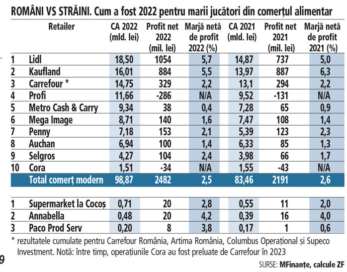 Faţă în faţă: care sunt cei mai profitabili retaileri din comerţul alimentar? Ce marje raportează străinii şi cât românii?