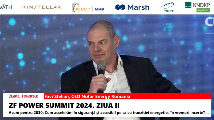 Israelienii de la Nofar Energy, care operează împreună cu Ecoenergy cel mai mare parc fotovoltaic conectat la reţea din România, la Răteşti, jud. Argeş, au un portofoliu de proiecte fotovoltaice de 700 MW pentru piaţa locală, care ar putea ajunge la 1 GW până la finalul anului 2024, după cum a explicat Favi Stelian, CEO Nofar Energy România, prezent la ZF Power Summit 2024.