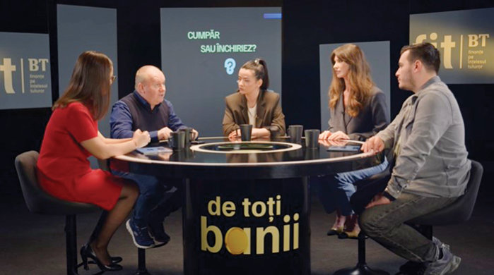 ♦ Subiectul cumpărării unui apartament prin credit versus plata unei chirii a reprezentat tema centrală a celui mai recent episod al show-ului „De toţi banii“, parte din proiectul FIT - Finanţe pe Înţelesul Tuturor, un proiect lansat recent de Banca Transilvania cu ambiţia de a transforma FIT în cel mai mare program naţional de educaţie financiară, menit să contribuie la atenuarea deficitului României în raport cu Uniunea Europeană în ceea ce priveşte educaţia şi incluziunea financiară ♦ Show-ul „De toţi banii“ a abordat până acum şi teme legate de economisire, credite, siguranţă online, antreprenoriat, tipuri de companii şi modalităţi de organizare a afacerii.