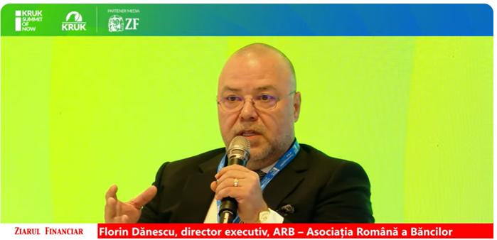 Industria bancară nu reuşeste să fie convergentă cu Europa pe zona de intermediere financiară, ba chiar pierde pasul. România este la 23% iar Europa la 75%, a declarat Florin Dănescu, Director Executiv, ARB – Asociatia Romana a Bancilor în cadrul conferinţei KRUK Summit of Now – Ecosistemul financiar al încrederii. ”Venim dintr-o perioadă economică în care industria bancară nu reuşeste să fie convergentă cu Europa pe intermediere financiară , ba chiar pierdem pasul. Noi suntem la 23%, iar Europa la 75%. Se iau bani din credit comercial, cu dobânzi de 5-10 ori mai mari decât de la bănci şi pe zona asta nu avem transparenţă. Nu trebuie rezolvate probleme din anii 90, cărăm nişte bilanţuri cu probleme. Aşa este de peste 20 de ani. Şi discuţia asa nu se poartă”.
