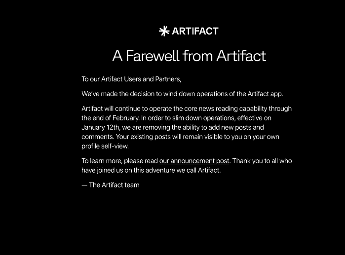 Fondatorii Instagram închid aplicaţia de ştiri Artifact, lansată în urmă cu un an. „Oportunitatea nu este suficient de mare pentru a continua investiţiile”