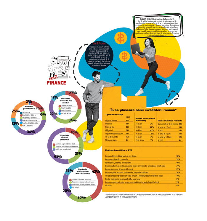 Să investeşti este simplu. Trebuie doar să începi. Şi pentru că trăim într-o lume din ce în ce mai digitalizată, investiţiile la Bursa de Valori Bucureşti au devenit accesibile printr-un clic distanţă pentru oricine. Fie că abia ai împlinit 18 ani, fie că te gândeşti la viitorul primului tău născut sau pur şi simplu vrei să te pensionezi mai devreme, investiţiile din timp şi documentate la Bursă pot fi o soluţie.