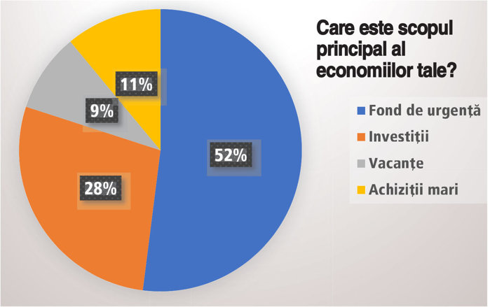 Banii pe care îi pui deoparte lunar au un scop, chiar dacă uneori nu e foarte clar definit. Pentru unii, economiile aduc siguranţă şi linişte în faţa situaţiilor neprevăzute. Pentru alţii, sunt un pas spre o creştere financiară prin investiţii. În acelaşi timp, economiile te pot ajuta să mergi într-o vacanţă la care visezi de mult timp sau să faci achiziţii importante fără nicio grijă. Indiferent de direcţie, scopul spune multe despre priorităţile financiare. Am întrebat pe toate platformele sociale: „Care este scopul principal al economiilor tale?“.