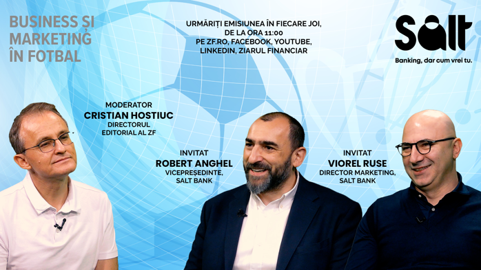 Joi, la ora 11:00, are loc a cincea ediţie a emisiunii „Business şi marketing în fotbal”. Robert Anghel, vicepreşedinte Salt Bank, şi Viorel Ruse, director de marketing, vorbesc despre cum a ajuns Salt Bank una dintre primele bănci care să investească în fotbal