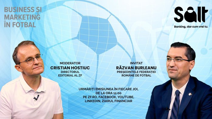 Joi, la ora 11:00, are loc a patra ediţie a emisiunii „Business şi marketing în fotbal”. Răzvan Burleanu, preşedintele Federaţiei Române de Fotbal, povesteşte cum şi-a triplat FRF veniturile în ultimii 10 ani