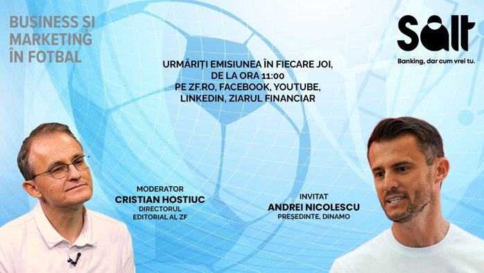 Joi, la ora 11:00, are loc a şaptea ediţie a emisiunii „Business şi marketing în fotbal”. Andrei Nicolescu, preşedintele clubului Dinamo, dezvăluie cum poate fotbalul românesc să devină un business.
