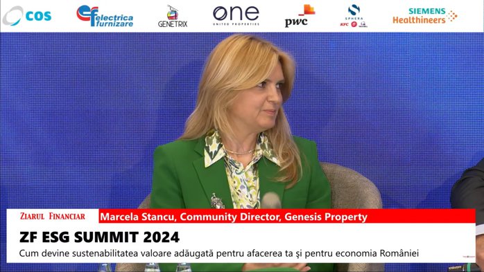 Sistemul imobiliar şi mediul construit reprezintă una dintre principalele surse de poluare la nivel global, întrucât este mediul în care ne desfăşurăm o bună parte din timp, ceea ce înseamnă că trebuie să luăm măsuri pentru a duce o viaţă mai bună, după cum a explicat Marcela Stancu, community director Genesis Property, prezentă la evenimentul ZF ESG Summit 2024.
