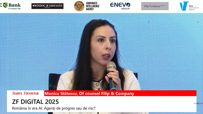 Reglementările privind inteligenţa artificială (AI) trebuie detaliate suplimentar, în special în ceea ce priveşte etica utilizării, testarea prealabilă a tehnologiei înainte de lansarea pe piaţă, clarificarea răspunderii utilizatorilor şi asigurarea securităţii, consideră Monica Stătescu, Of counsel, Filip & Company.